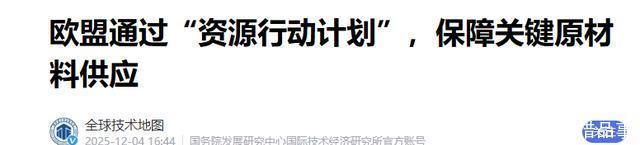 欧盟若真想摆脱"依赖焦虑",不如放下冷战思维,用真诚合作替代零和博弈——毕竟,供应链的安全从来不是靠威胁得来的,而是靠互利共赢的信任构建起来的。 参考资料: 欧盟通过“资源行动计划”,保障关键原材料供应——全球技术地图
